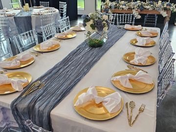 Included in this price are tables and chairs up to 60 people with your choice of black or white linens and an 8-hour day.